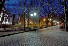 Тихо поскрипують дерева. Вечоріє. Накрапає осінній дощик. Поодиникі перехожі та закохані парочки гуляють при світлі ліхтарів по Валу. Вдалині видніється сяйво вогнів, крізь які вирисовується велична споруда дзвінниці Троїцького собору...