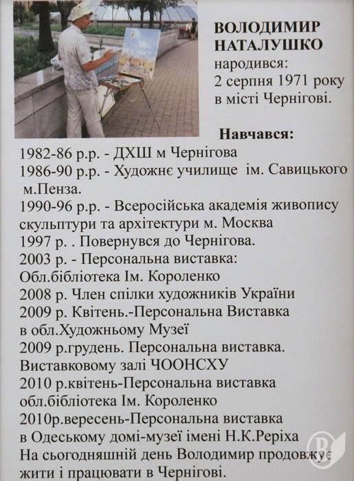 У Чернігогві триває шоста персональна виставка картин Володимира Наталушка, члена національної спілки художників України.
