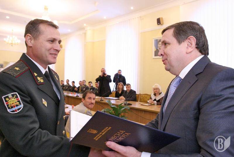 Переконаний, що пройде небагато часу — і в нашій державі буде створено сучасну армію, яка відповідатиме міжнародним стандартам за рівнем бойової підготовки, ефективності, оснащеності й соціальної захищеності військовослужбовців. Немає сумнівів, що сучасне покоління людей у погонах гідно нестиме складну й відповідальну службу, залишаючись взірцем високого патріотизму, мужності і честі», - підкреслив керівник області та вручив кращим військовослужбовцям Почесні грамоти та Подяки облдержадміністрації.