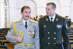 Питання зміцнення Збройних Сил постійно перебувають в центрі уваги Глави держави Віктора Федоровича Януковича. Відповідним Указом Президента України від 27 вересня 2010 року визначено завдання щодо піднесення престижу військової служби, сприяння вирішенню соціально-побутових проблем військовослужбовців, продовження усталених традиції шефства над військовими формуваннями», - зазначив Володимир Хоменко.