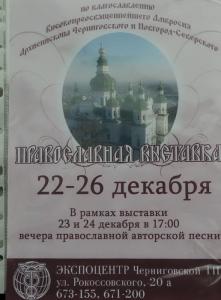 А поки що завітайте до приміщення Чернігівської регіональної торгово-промислової палати за адресою: вул. Рокосовського, 20-а. Тут до 26 грудня діє православна виставка-продаж.