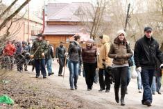 Цієї суботи вони, не дивлячись на негоду, дружно вийшли на берег Десни в районі пішохідного мосту і пройшли майже кілометр за течією.