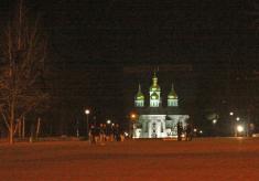 У кадрі центральна частина Чернігова – найлюдяніші місця, які більш-менш безпечні для туристів. Та й годинникова стрілка тільки-но добралась до цифри 9, що для деяких азартних людей означає щасливе число – 21.