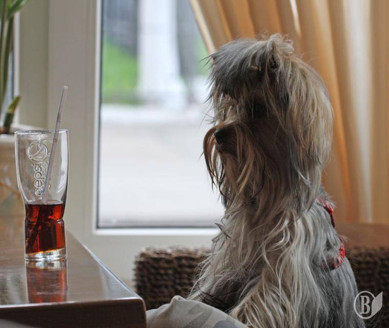 Сьогодні ж Моніка гуляла по вулиці з господарем і потерпала від спеки, яка уже три дні гріє Чернігів, та зазирнула до приміщення аби перепочити.