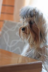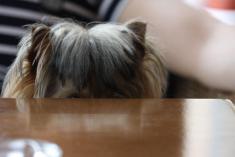 Її красиві чорні очі зачарували мене розумом. Граючись, вона ховала їх під стіл і лише краєчком ока спостерігала за моєю реакцією. Водночас показувала свої гарні манери – жодного разу не поклала лапи на сіл – вихована дівчинка.