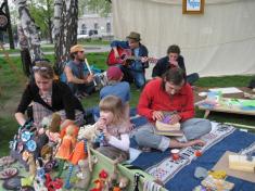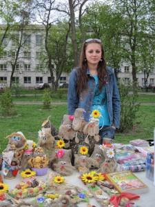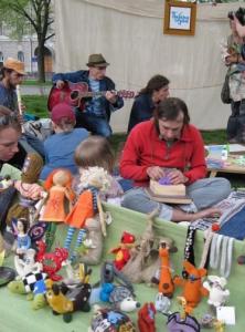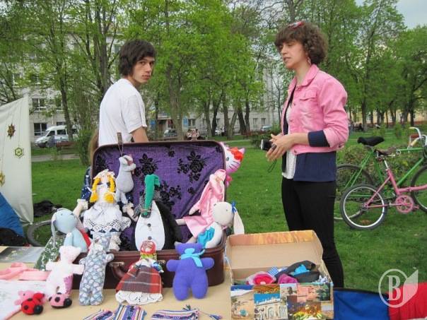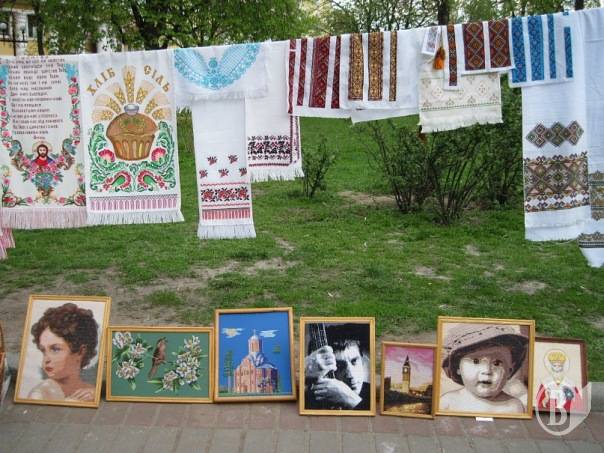 Сонячного суботнього дня на Пасхальному тижні сквер «Жабки» перетворився на справжню оазу творчості та натхнення. Між деревами були розвішені яскраві рушники та вишиванки. Прекрасні картини чернігівські художники розставили просто на зелених галявинах. Кожен магазин чи об’єднання майстрів намагалися якнайкраще представити свої вироби. Серед інших виділялася експозиція магазину-студії «Писана торба», адже майстри розташувалися просто на травичці, а також вдягли незвичне вбрання під старовину, привели з собою маленьких дітей. У сквері діяв справжній гончарний круг, на якому можна було спробувати створити глечик чи кухоль. Вироби майстрів можна було не тільки побачити, а й чогось повчитися під час різноманітних майстер-класів.