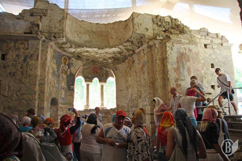 Якщо ви приїхали сюди в складі екскурсії, то вам не вдасться потрапити до храму, не відвідавши одну з іконних лавок, якими окуповані всі підходи до православної святині.