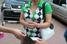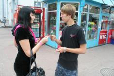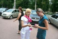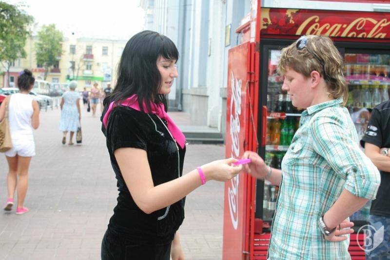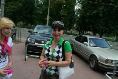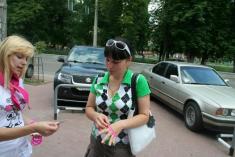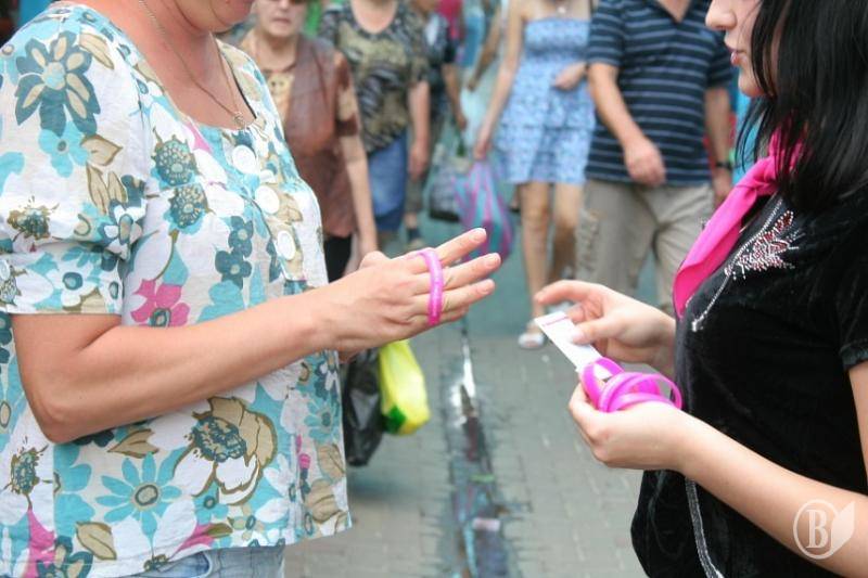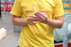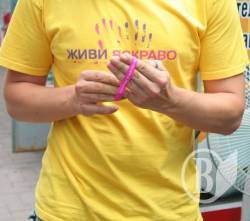 Волонтери Чернігівської молодіжної ГО <<Центр прогресивної молоді <<Апельсин>> поширювали спеціальний знак єднання - малинові браслети з написом <<Залишайся людиною>>.