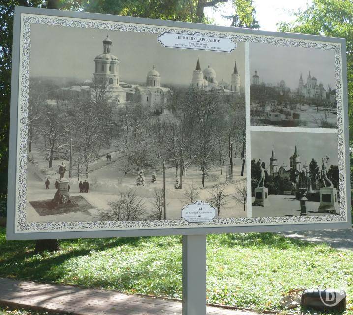 На фотостендах, виготовлених рекламною агенцією "Gold Future", представлені зображення стародавнього Чернігова від періоду Київської Русі – до середини ХХ ст. Серед них репродукції картин художника і краєзнавця Г.Петраша, підготовлені працівниками Національного архітектурно-історичного заповідника «Чернігів стародавній».