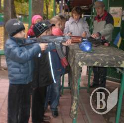 Козаки підготували, а чемпіонка з біатлону Н.Лемеш, за сприяння товариства українських офіцерів, провела спортивно-виховний олімпійський урок. Ніна Петрівна навчала діточок правилам стрільби, пробуджувала в учнів бажання розвиватися та удосконалювати свої здібності. Завершився урок міні-турніром зі стрільби автоматом «Калашникова».