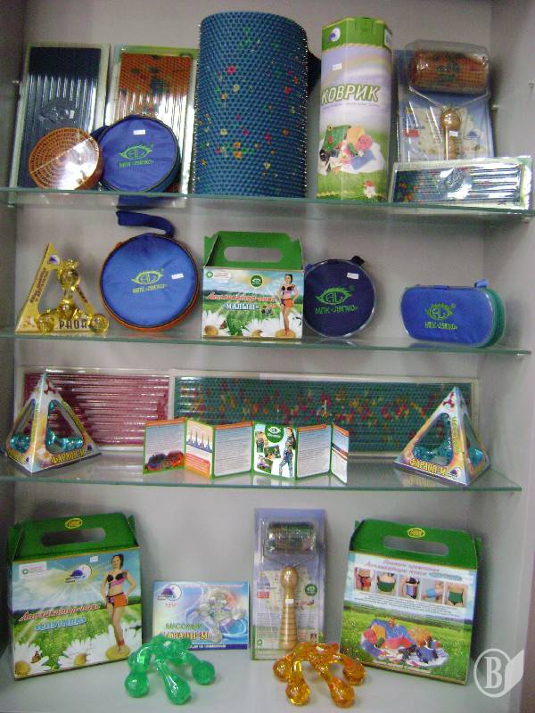 В асортименті екоЦЕНТРу підтримуючі та зігріваючі пояси, коректори осанки, ортопедичні устілки, сольові грілки, антиварикозний трикотаж, медичний одяг, аплікатори Ляпка, миючі та пральні засоби без фосфатів і хлору.