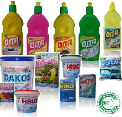 Інакше як жахливими, не можна назвати реалії і в побутовій хімії. Рекламуючи чистоту посуду, ідеальне прибирання та прання, ці засоби містять в собі дешеві та небезпечні для здоров”я хімічні сполуки та ароматизатори, які викликають алергію, інтоксикацію, отруєння і навіть рак. То ж подбайте про своє здоров”я та здоров”я майбутнього покоління! В екоЦЕНТРі «Здоров”я і краса» ви можете придбати безпечну мийну продукцію. Її єдиний виробник в Україні – фірма «ДаКос», яка не використовує у своєму виробництві хлору, фосфатів та синтетичних поверхневоактивних рідин.