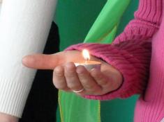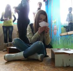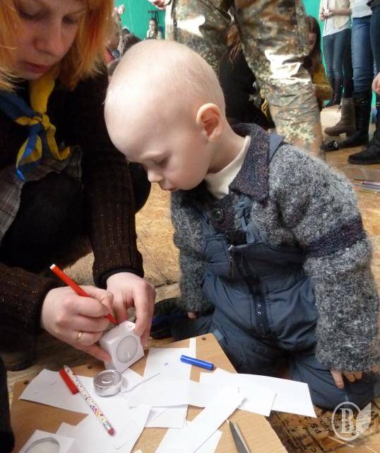 Проводили також заняття з орігамі. В нашій майстерні ми вчимося виготовляти сувенірні коробочки. З неї ми робимо підсвічник і 22-го лютого о 20-й годині і 8 хвилин вечора ми всі запалимо ці свічки кожний у себе вдома. І таким зусиллям ми об’єднаємо свої серця і свій настрій на добрі хороші справи.