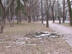 Минулого тижня несподівано здійнявся невеличкий буревій. І як наслідок – з дерев впало кілька великих сухих гілок, одна з них звалилась на пішохідну доріжку, біля Колегіуму.