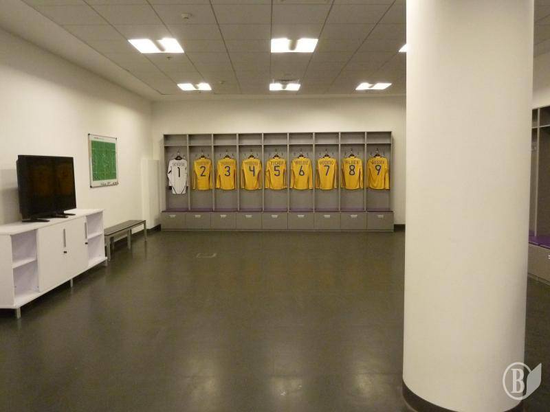 З іншого боку зали – столи для масажу, холодильник для медичних препаратів, міні-бар з безалкогольними напоями. Поруч - джакузі. Це не примха гравців, а необхідність, адже це найдешевший і найефективніший спосіб відновити тонус м’язів. У роздягальні підтримується ідеальний температурний режим. Підлога тут з підігрівом і з матеріалу з гумою, аби футболісти не стирали покриття бутсами. В цій же кімнаті ми побачили мийки для бутсів. Екскурсовод продемонструвала, як гравці миють новые бутсы адидас 2013 перед тим, як вийти на поле. І це треба робити обов’язково, аби не занести шкідників на поле!