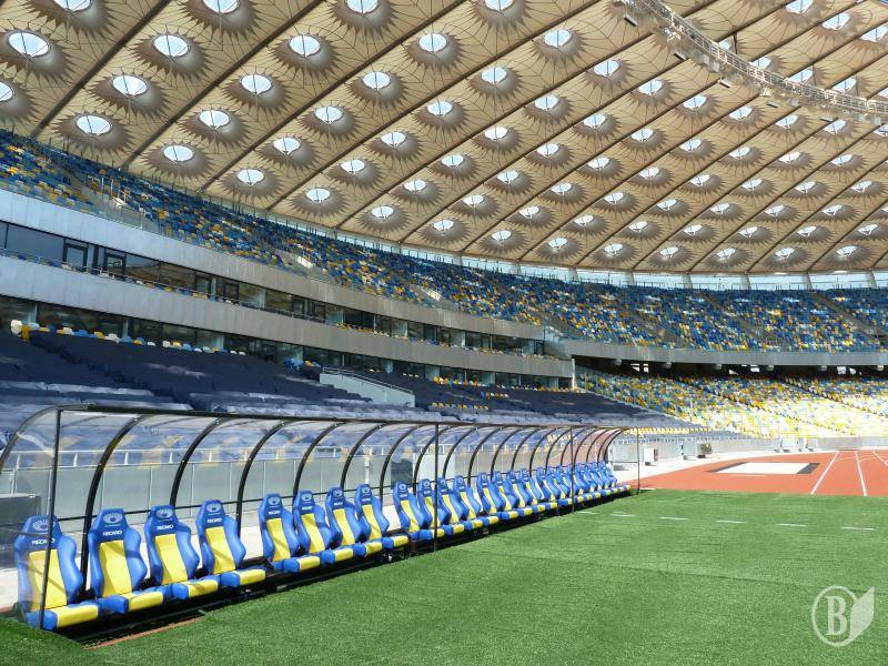 Коли ми разом з нашим чарівним екскурсоводом увійшли до чаші стадіону, то були вражені його розмірами! Так, висота до стелі – 49,5 м. Кожне сидіння на 5 см ширше загальноприйнятого стандарту для зручності кожної людини. Сидіння – антивандальні, надміцні, виготовлялися в Британії, їх забарвлення – різнокольорове, виконане у кольорах нашого національного прапору. За допомогою спеціальної комп’ютерної програми сидіння розташовані таким чином, аби справлялося враження, що стадіон заповнений глядачами.