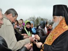 І ось на третій день Світлого Воскресіння Христового було урочисто освячено місце під майбутній храм і закладено у фундамент Свято-Михайлівської церкви камінь, що символізує початок будівництва і відродження храму.