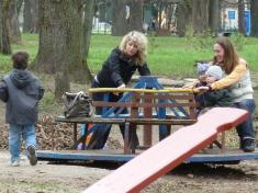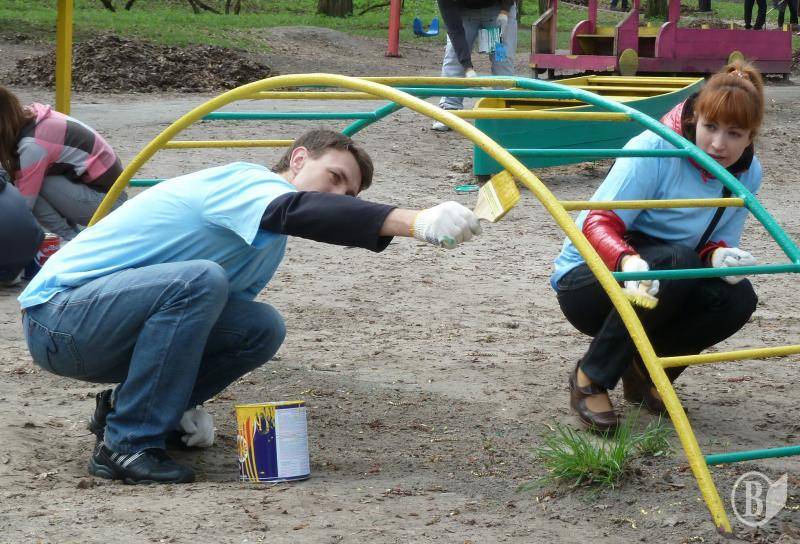 Дитячий майданчик поблизу Дитинця волонтери компанії Київстар прибирають вже другий рік поспіль. Як зауважує неформальний лідер толоки та керівник обласного відділення мобільного гіганта В‘ячеслав Чаус, ще торік київстарівці запримітили занедбаний стан тутешніх гойдалок, дерев‘яних будиночка, лавочок, човника. Стара фарба подекуди потьмяніла, злущилася і майданчик втратив свій яскравий вигляд. «Тож цього разу захотілося зробити приємне не тільки дорослим, наводячи тут чистоту, а й маленьким, пофарбувавши іграшкові споруди у веселі та свіжі кольори», пояснює В‘ячеслав Чаус.