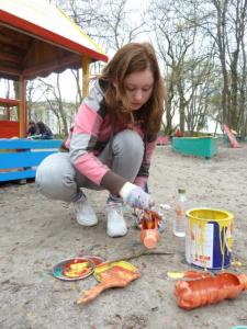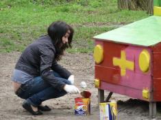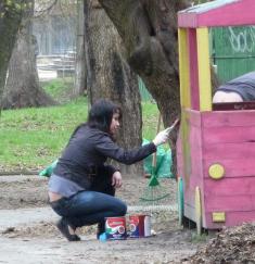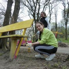До цієї задачі київстарівці поставилися не як до обов‘язку, а швидше як до відпочинку. Багато хто прийшов із сім‘ями, тож прибирати допомагала і малеча. Маленький Максим Сотников настільки заповзято орудував пензликом, що під кінець суботника встиг пофарбувати не лише лавочку, а й власне волосся.