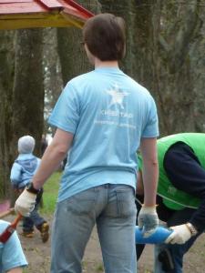 — Так вже вийшло, що ми працювали поруч з Київстаром, не вважайте це за рекламу, фронт робіт нам відмітили, а сусіди ще й допомогли, нам менше залишилось, — сміється. — І місця, і роботи вистачило на всіх. Принаймні мозолі на руках є. Що приємно, цього разу у нас не було проблем з реманентом. Якщо раніше його бракувало, то нині навіть можна було вибирати з чим хочеш працювати: з граблями, лопатою чи віником. Ще й багато інструменту вільного лишилося.