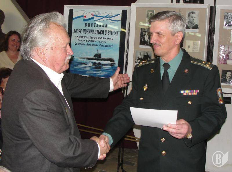 Про ці та інші героїчні і цікаві будні підводників-атомників розповів Герой Радянського Союзу капітан першого рангу у відставці Соколов Валентин Євгенович, під час презентації присвяченій йому виставки «Море починається з вітрил» у Чернігівському військово-історичному музеї, повідомляють у регіональному медіа-центрі при Міноборони України.
