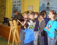Екскурсією навчальним центром школярі ознайомилися з умовами проживання військовослужбовців. Зокрема, в навчальному корпусі побачили, як курсанти тренуються керувати технікою на тренажерах, а в оптичному тирі вправлялися у стрільбі з лазерної зброї. Потім відвідали парк бойових машин.