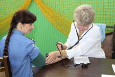 Також не оминули цю благодійну акцію і жінки в погонах. Традиційно прийшла внести свою «краплину крові» начальник управління інформаційно-аналітичного забезпечення УМВС Валентина Акуленко. Ця на вигляд досить тендітна пані завжди здає кров на рівні з чоловіками. В черзі, яка вишикувалась біля входу до залу, в якому проходив захід, серед чоловіків, можна було побачити і дівчат.