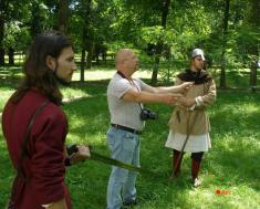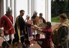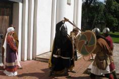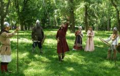 Наступною цікавинкою були історичні реконструктори з Клубу історичної реконструкції «Гульбище». Взагалі вони вікінги, але… «Сьогодні будемо слов’янами», - говорить Юрій Коротков, один з членів команди.