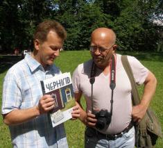Борис Атрощенко, начальник управління стратегічного розвитку міста та туризму Чернігівської міськради подарував ведучому програми „Машина часу”, пану Андрію Охрімовичу книгу Сергія Леп’явка «Чернігів. Історія міста». Вона буде не лише цікавою для прочитання, а й потрібною для подальших зйомок.
