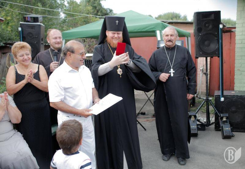 В урочистій атмосфері владика зачитав грамоту від Святішого Патріарха Київського Філарета й нагородив голову Ніжинської міської організації асирійців "Атра" Вільяма Тамразовича Арвахі орденом Святого рівноапостольного князя Володимира Великого I-го ступеню.