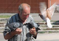 Цей позашлюбний татко голубів любить птахів. І не соромиться такого публічного вияву своїх почуттів. І вони його люблять. І не бояться.