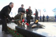 Керівники області та міста, керівники структурних підрозділів, підприємств та організацій, ветерани Великої Вітчизняної війни, представники об’єднань громадян поклали вінки та квіти до братської могили у сквері ім. М.М. Попудренка та до Могили Невідомого солдата й Вічного вогню на Меморіалі Слави.