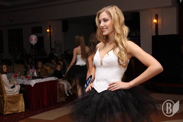 Виходи конкурсанток були настільки елегантними, що будь-яка княжна позаздрила б цьому. Класичний перший вихід - презентація. Дівчата продемонстрували корсети від весільного салону «Камелія» з чорними спідницями у вигляді балетних пачок.