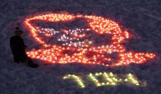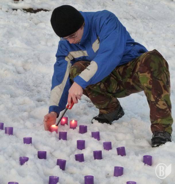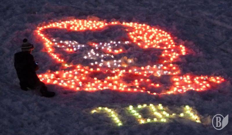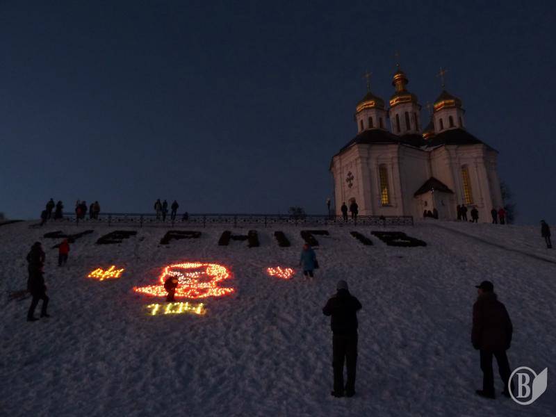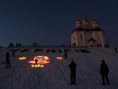 Священики храму відправили молебен біля пам'ятника Борцям за волю України. А, коли вже стемніло, портрет Степана Бандери зі свічок запалав на пагорбі при в'їзді в місто. Але про це - у окремому матеріалі.