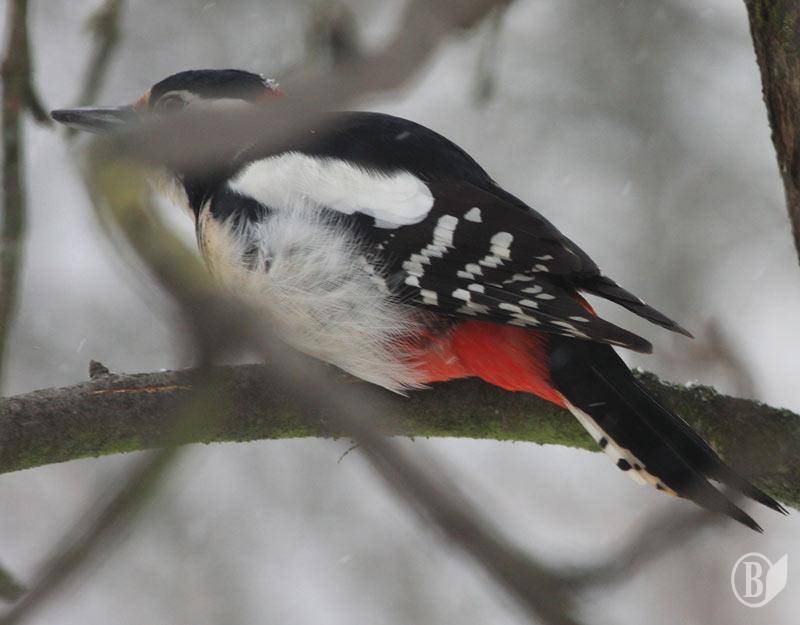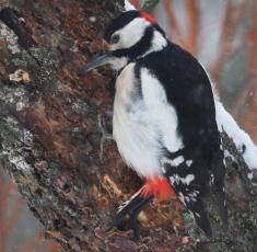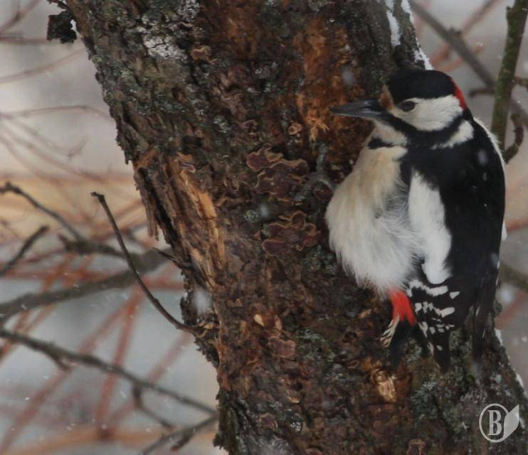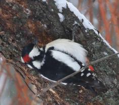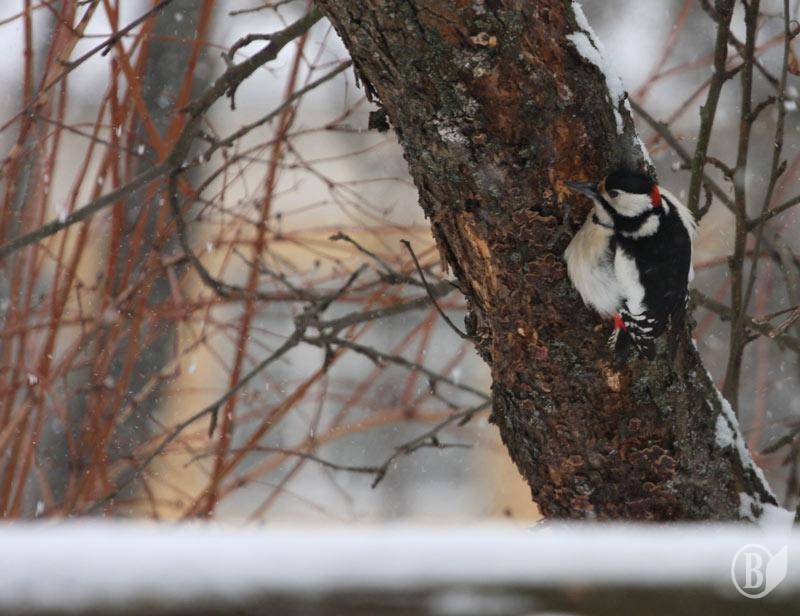 Зараз січень, тож зрозуміло він настовбурчив пух, щоб було тепліше. А гніздування дятел почне аж у квітні – червні. Самка раз на рік знесе 4-7 яєць і вигодовування пташенят триватиме 20-24 дні.