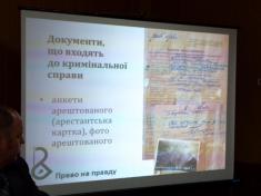 Лектор розповів про технологію затримання, допитів і обвинувачень. До процесу у якості понятих і свідків залучалися усі, кого режим тримав на гачку - від передягнених працівників тих самих органів і кримінальників до бюджетників.