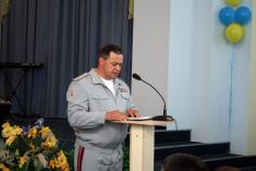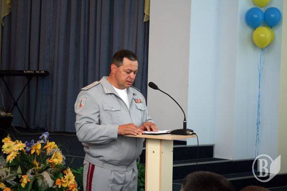 В своїй промові він відзначив знаменність прийняття Конституції - як історичного моменту в історії нашої Держави, який став новою точкою відліку для молодої незалежної Української держави. Керівник обласної міліції зробив історичний екскурс в часи надбання досвіду для втілення в Конституції всіх сподівань та віковічних прагнень українського народу, акцентував увагу на відповідальності саме нинішнього покоління правоохоронців за втілення норм Основного Закону в життя українського суспільства та охорону їх від протиправних посягань.