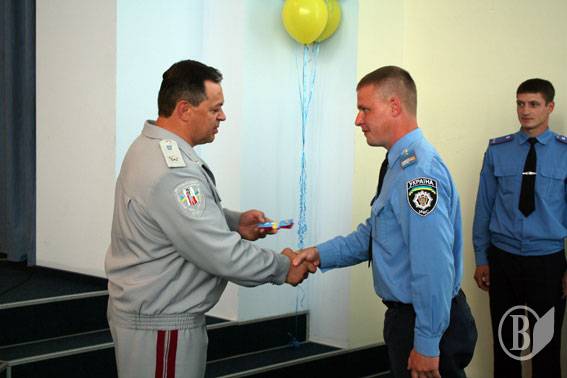 Начальник УМВС привітав колег зі святом та вручив новенькі погони, відомчі відзнаки та почесні грамоти ряду співробітників міліції Чернігівщини за високі досягнення у службовій діяльності.