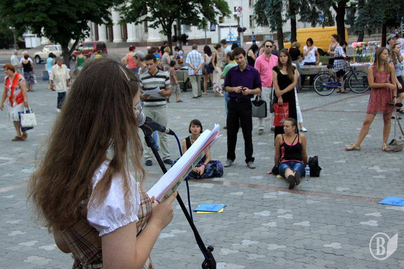 На фото ви можете побачити (слухати варто наживо) як свої твори читали чернігівські шукачі невідпорного слова. Наприклад, Олексій Маслов чи Оксана Пронько…