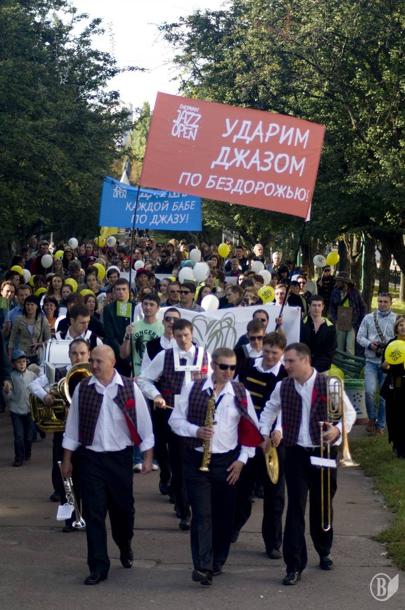 Год назад под этими веселыми слоганами собралась в центре Чернигова колонна участников первого и единственного в Украине джазового парада.