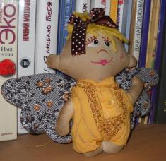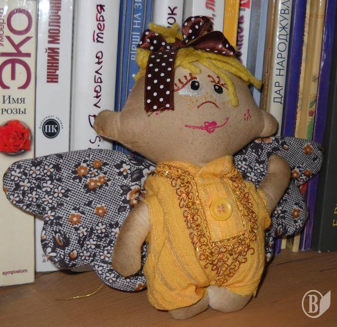 Дуже рідко в подібних роботах відображений характер, а в цього ангела він відчувається – дівчина така задумлива, замріяна! В центрі «Янголятко» на проспекті Перемоги є також великий янгол з дерева, що став прототипом нашого логотипу. А в іншому офісі є янгол, плетений гачком, і ще один досить великий – лялька-тільда – це також подарунки. Звісно, вони створюють дуже затишну, майже домашню атмосферу в офісі. І завжди нагадують нашим педагогам і батькам, що кожна дитина – це справжній янгол, дарунок від Бога.