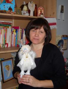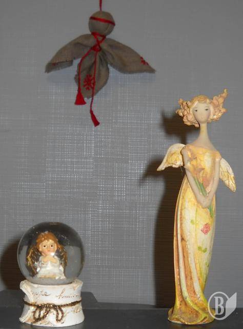 - Так, багато. Декілька ангелів, зроблених як наші традиційні ляльки-мотанки, - вироби нашої чернігівської майстрині Ольги Костюченко. Вона використовує тканину з вибійкою. Я завжди беру цих ангелів за кордон, аби дарувати під час зустрічей. Керамічний ангел – дзвіночок – робота ще однієї чернігівської майстрині Світлани Фалалєєвої.