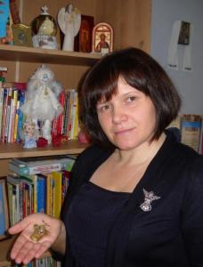 - Виходить, що так! Є в моїй колекції і нічний світильник у вигляді ангела, ангели-підвіски, ангели-підсвічники, обереги і навіть прикраси. Приміром, оця брошка з камінцями приїхала з Канади, і ще одна металева - з Америки. Це також авторська робота. Звісно, що всі вони мені дуже подобаються, кожен мені дорогий. Але чомусь до душі особливо ось ця скульптура - дівчина з крильцями, схожа на ельфа, яка тримає в руках квіти, можливо, це муза.