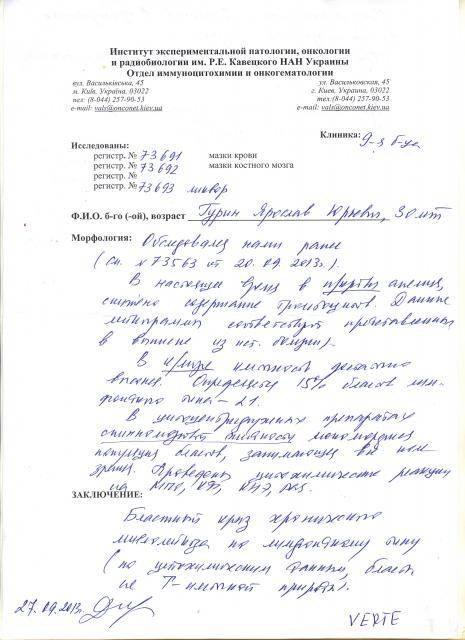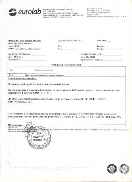 На очередном консилиуме, было решено проверить Ярослава на наличие нейролейкоза, ответ пришел крайне обнадеживающий. Лимфобластный нейролейкоз.