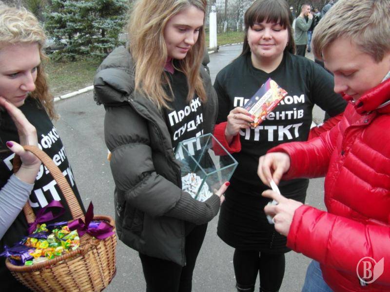 Студенти Чернігівського технікум транспорту та комп’ютерних технологій могли обміняти цигарки на цукерки минулого четверга, у Міжнародний день відмови від куріння (No Smoking Day).