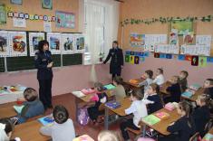 Саме з цією метою до першокласників завітала старший оперуповноважений кримінальної міліції у справах дітей УМВС в Чернігівській області капітан міліції Оксана Зубець. Вона з порогу зуміла зацікавити маленьку аудиторію й перетворити виховну годину в яскравий емоційний захід.