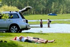 Взагалі, Чернігів - це місто чемпіонів. На другому знімку ви бачите переможця, який показує, що витяг 1-метрову щуку через 10-сантиметрову лунку на зимовій риболовлі.