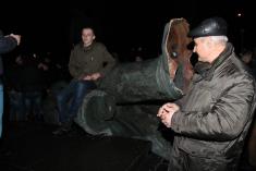 Народ сбросил бронзовую конструкцию, которая стояла в городе с 1967 года.