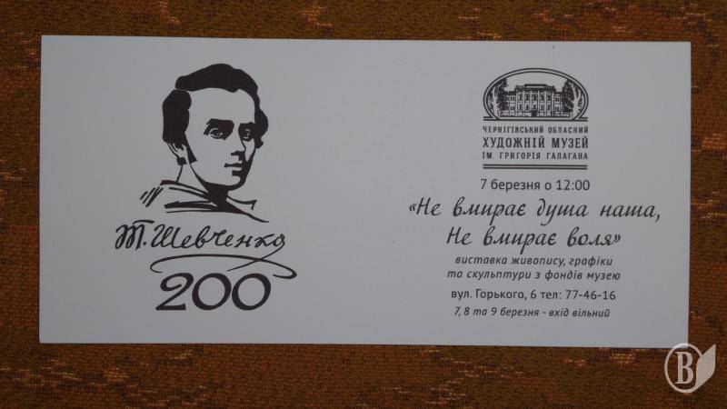 Виставка до 200-річниці від народження Т. Г. Шевченка відкрилася у Художньому музеї в Чернігові у безкоштовному режимі на 8-10 березня.