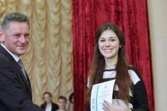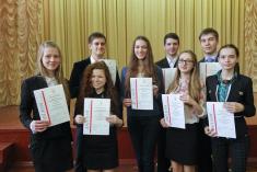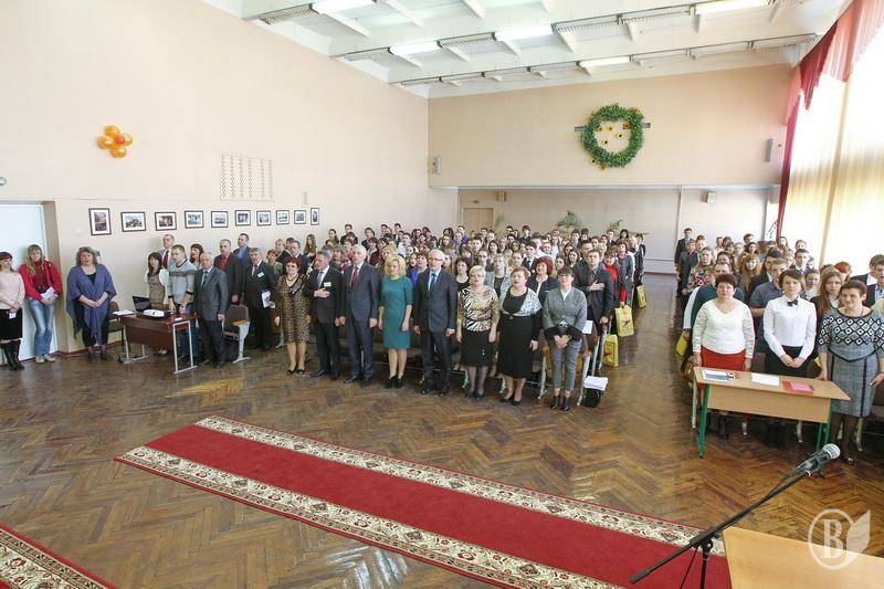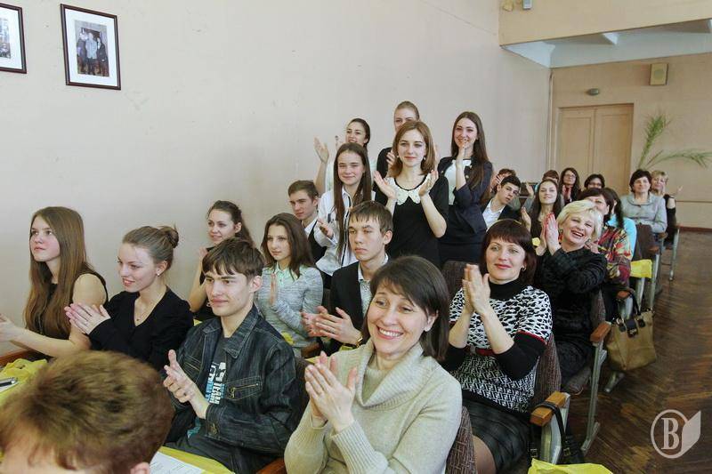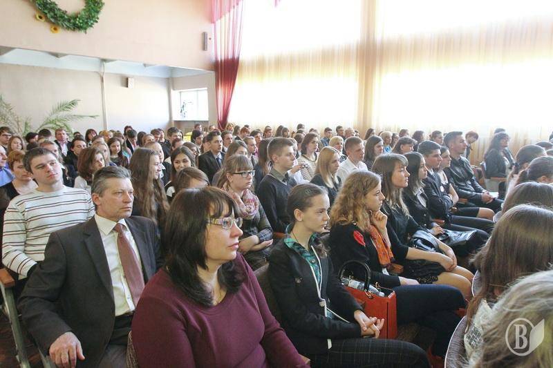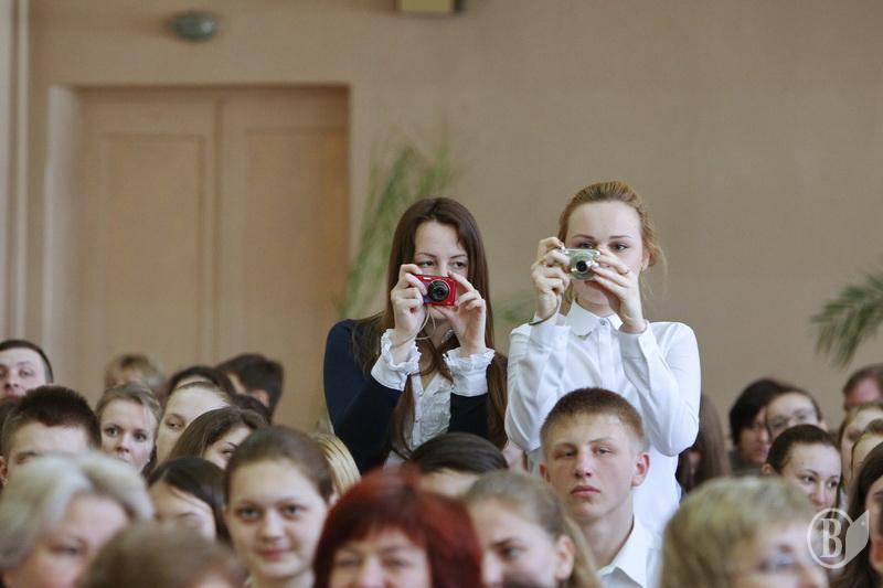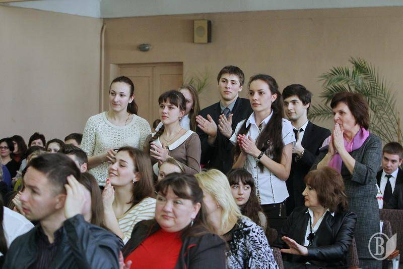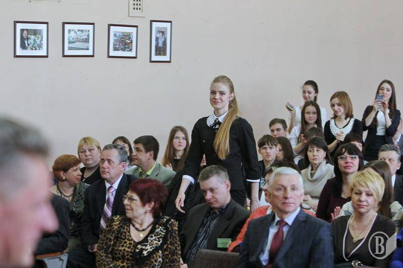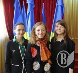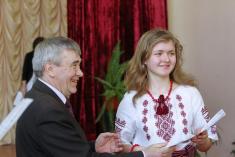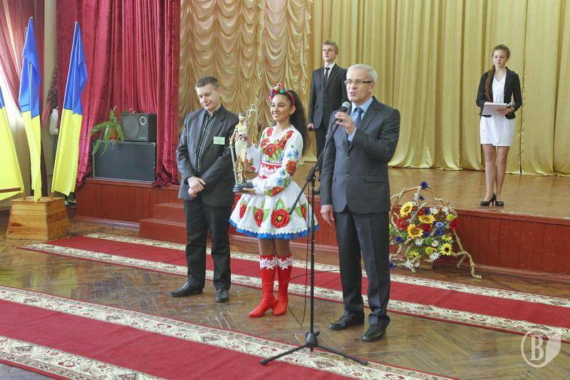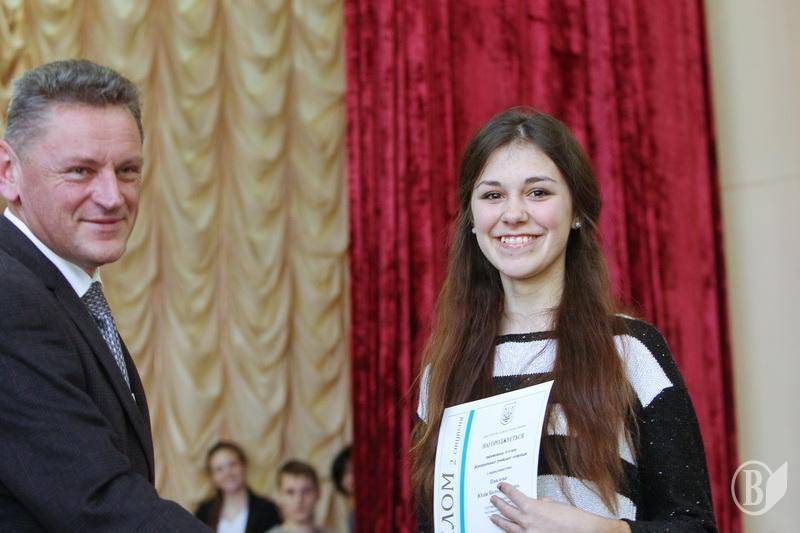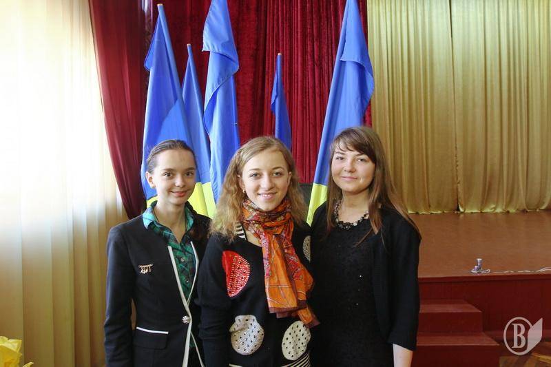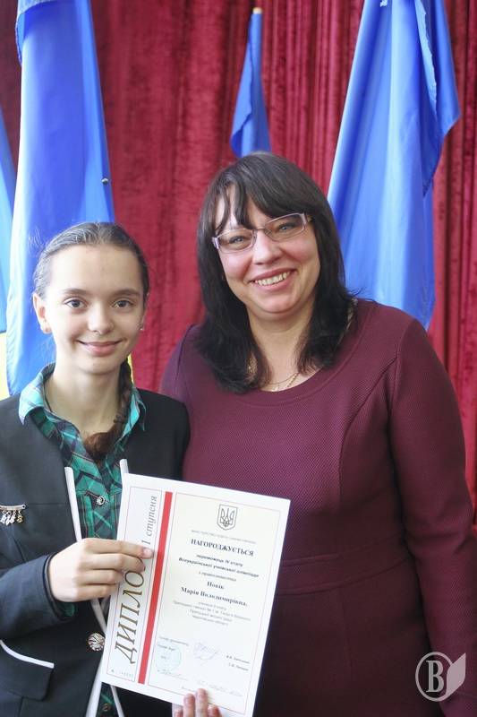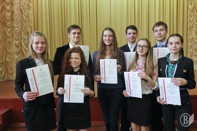 На одном из снимков председатель оргкомитета Анатолий Залеский и победительница Мария Новик и лучшие среди лучших, победители Всеукраинской олимпиады, которые получили Дипломы 1-й степени